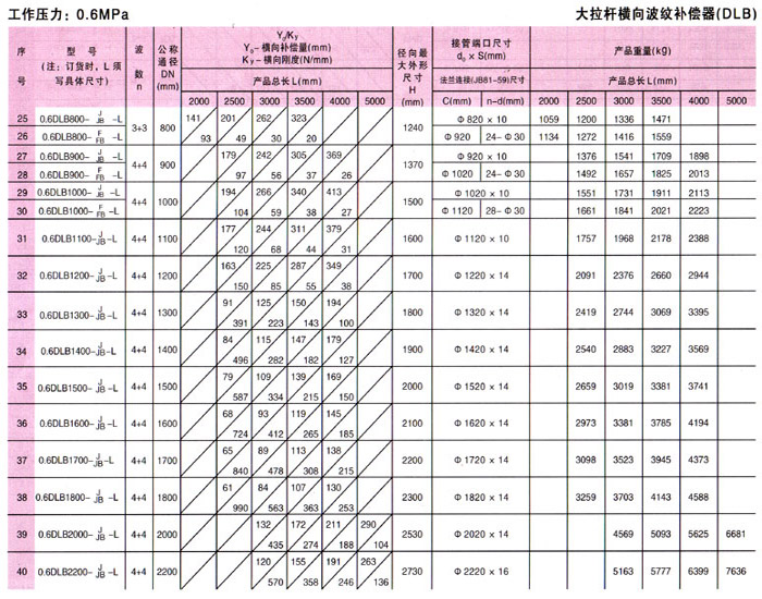 大拉桿橫向波紋補(bǔ)償器技術(shù)參數(shù)