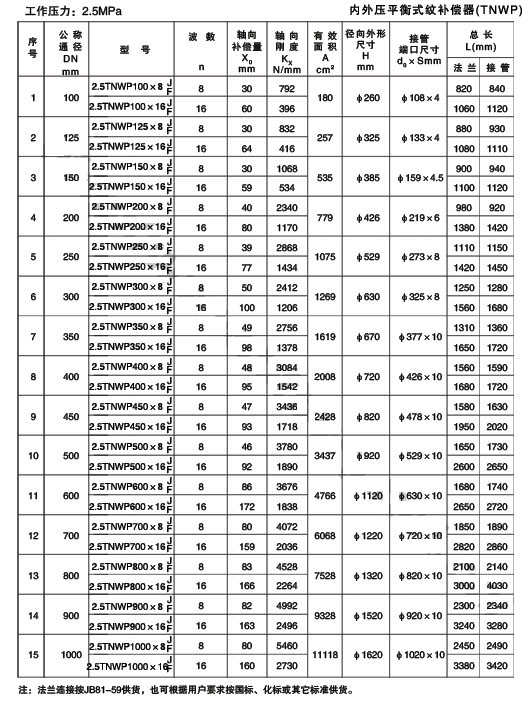 內(nèi)外壓力平衡式波紋補(bǔ)償器技術(shù)參數(shù)