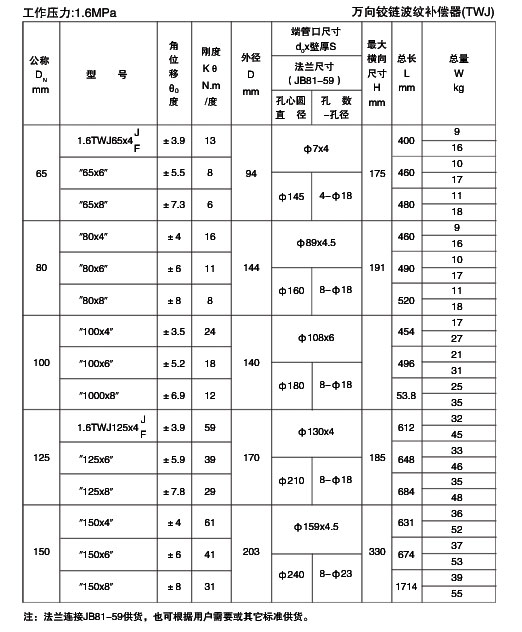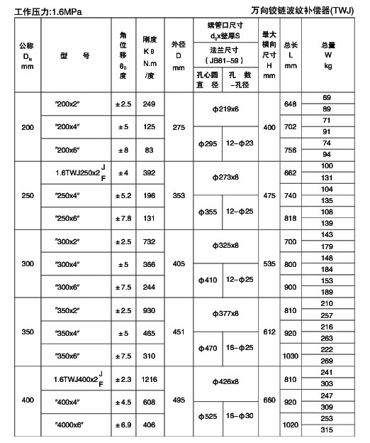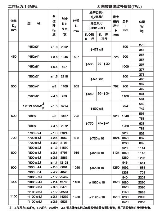 萬向鉸鏈波紋補(bǔ)償器|TWJ-萬向鉸鏈波紋補(bǔ)償器技術(shù)參數(shù)-中創(chuàng)機(jī)械