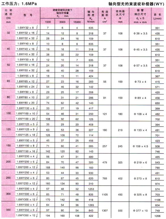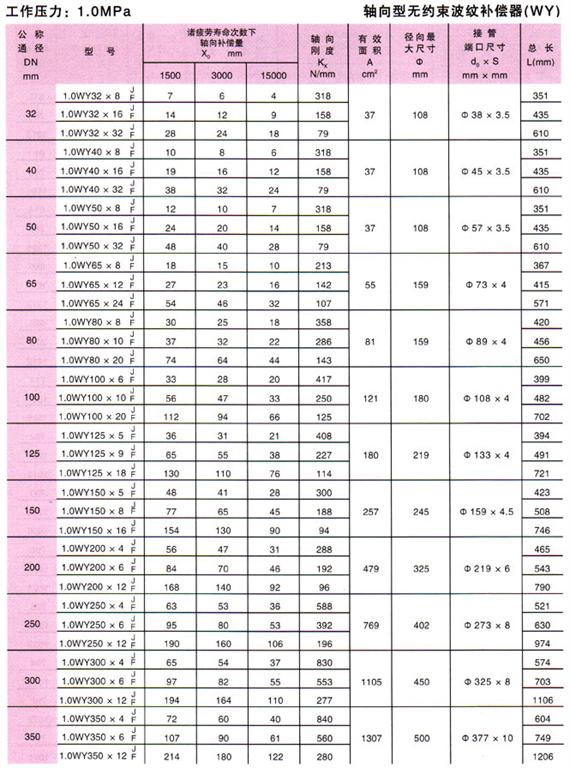 無約束波紋補(bǔ)償器技術(shù)參數(shù)