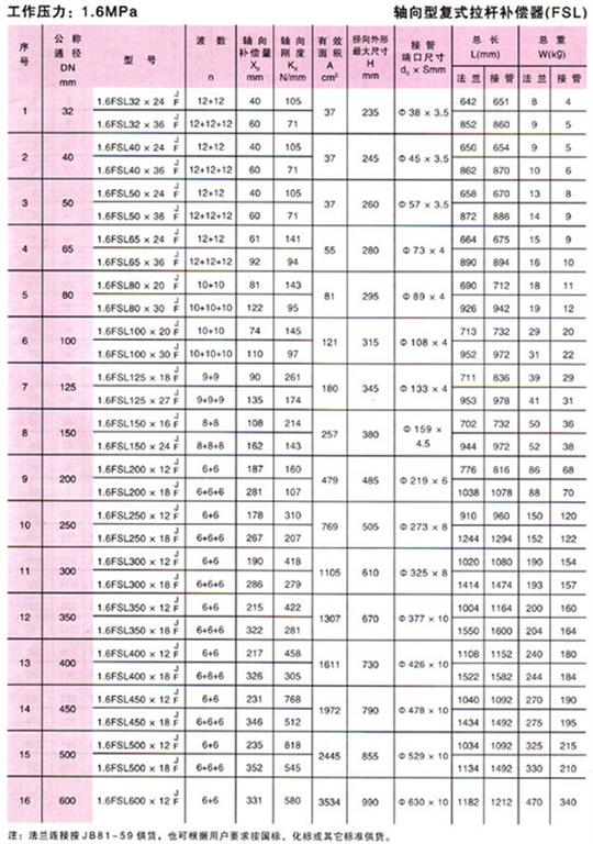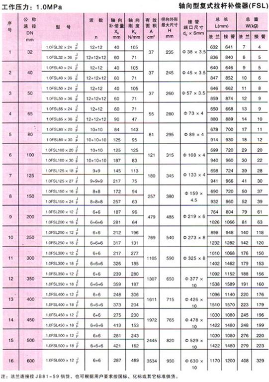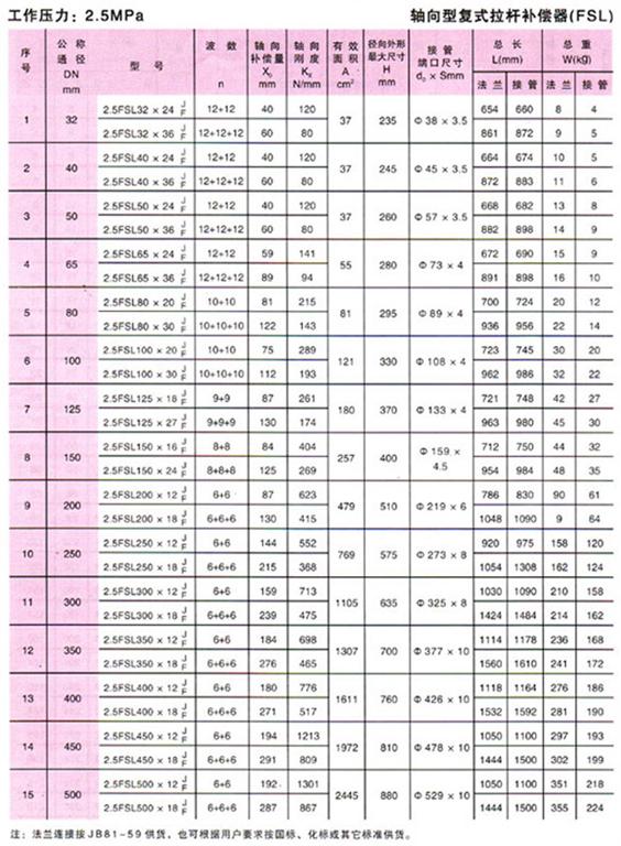 軸向復式拉桿波紋補償器|FSL-軸向復式拉桿波紋補償器技術參數-中創機械