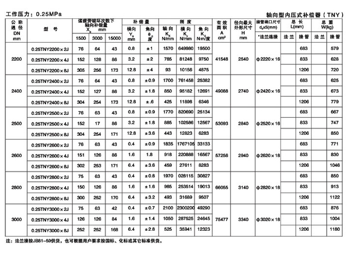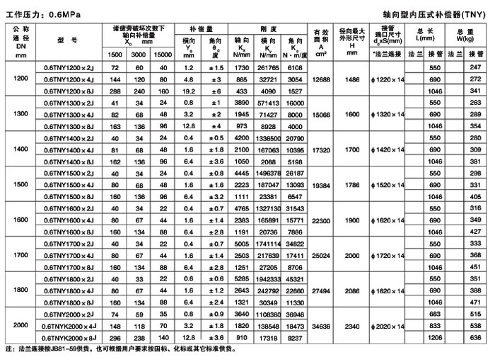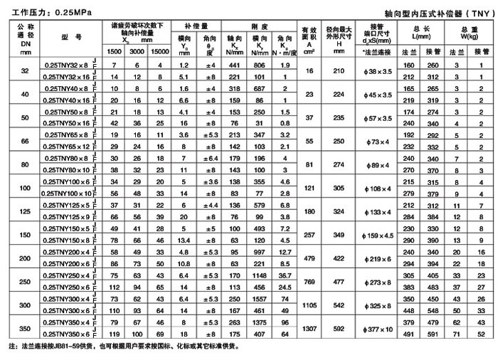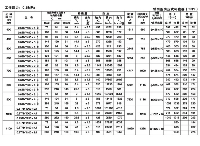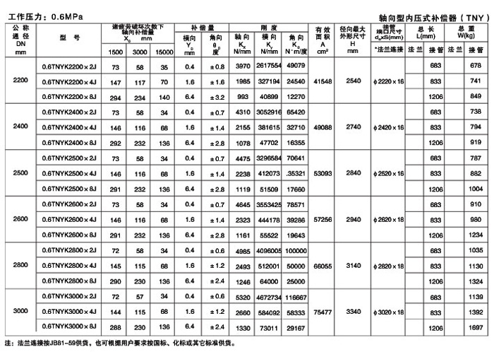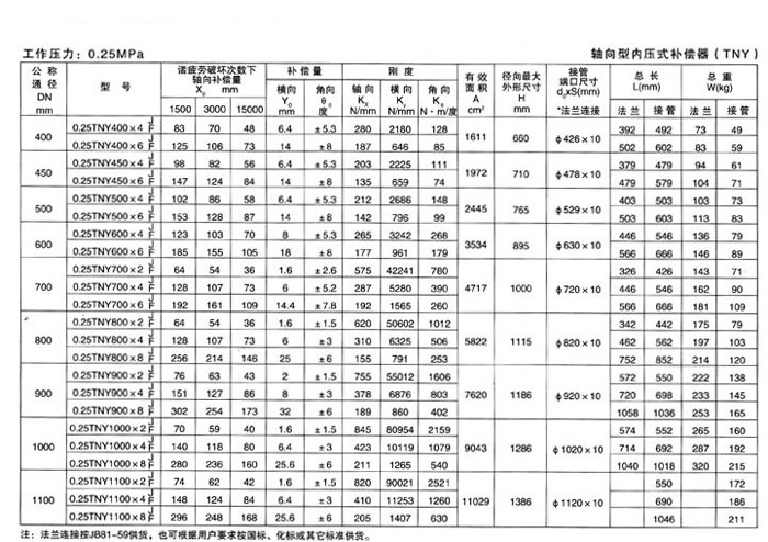 軸向型內(nèi)壓式波紋補(bǔ)償器技術(shù)參數(shù)(一)